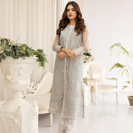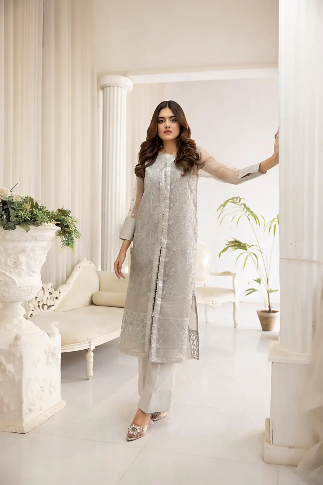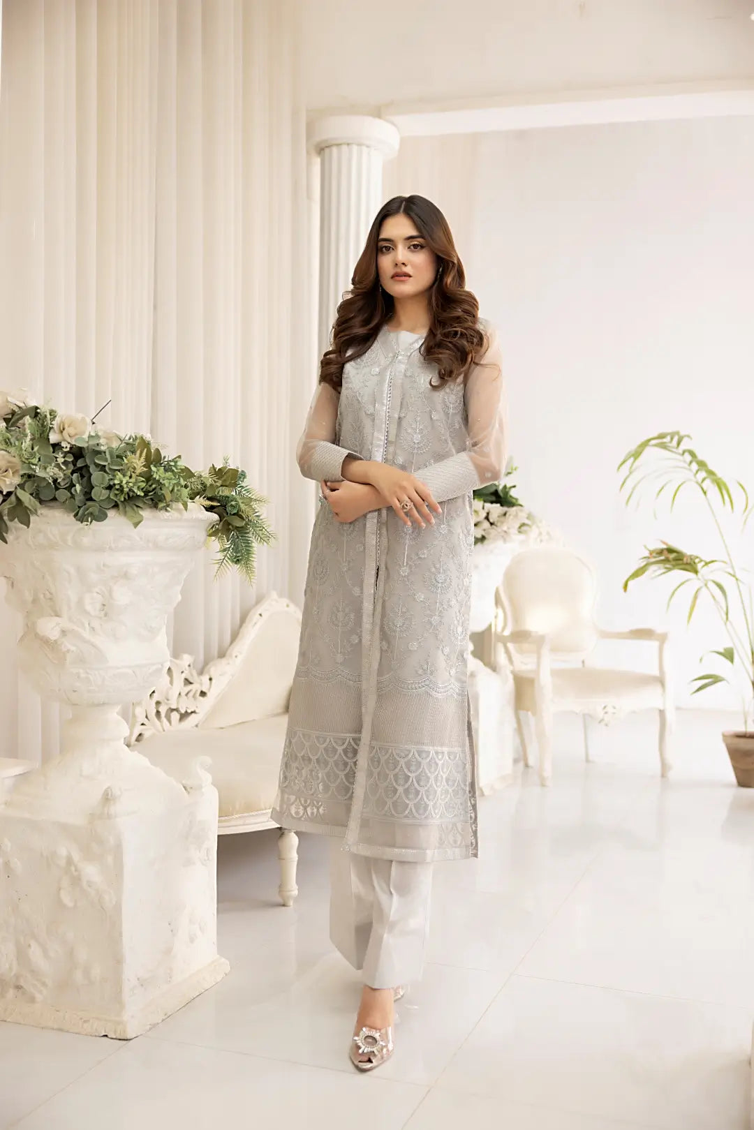 The Grey Long Coat is a perfect fusion of elegance and glamour. Made from luxurious