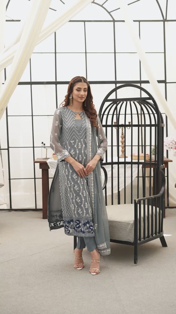 Embrace modern elegance with our Grey A-Line Shirt , designed to make a striking impression. This sophisticated piece features a graceful A-line silhouette, adorned with intricate white embroidery for a touch of classic charm. The blue accents offer a unique, refreshing contrast, while the delicate pearl detailing on the neckline and sleeves adds a luxurious finish. Perfect for any occasion where a refined, stylish look is essential.